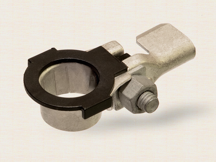 Клемма АКБ стальная, крепление-обжим провода, с изоляцией, Минус, шт. Klemos (KL 051)