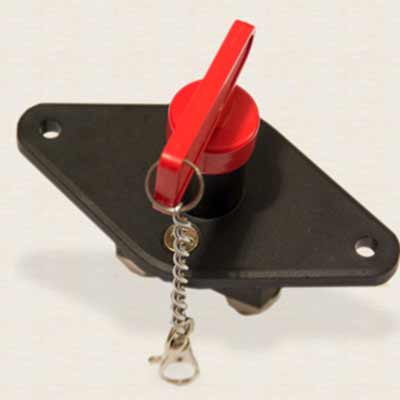 Выключатель массы предназначен для ручного включения и отключения массы в любых типах автомобилей с большим током запуска. Имеет съемную ручку-ключ, без которой включение прибора невозможно, а также специальный резиновый колпачок для предотвращения попадания воды и грязи в отверстие для ключа. Рассчитан на ток до 300 Ампер.