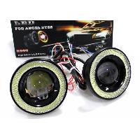 Комплект дневных ходовых огней с металлическими ножками для установки. Противотуманки линзованные стеклянные герметичные (тип диодов в линзе: Epistar D 65 см) Диаметр ангельских глазок 89 мм . Корпус фар металлический, глубина установки 7 см.