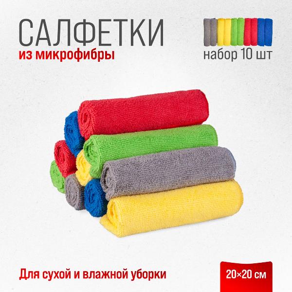 Салфетка микрофибра 20*20см (набор 10 шт), в рулончиках, к-т SKYWAY S03902010