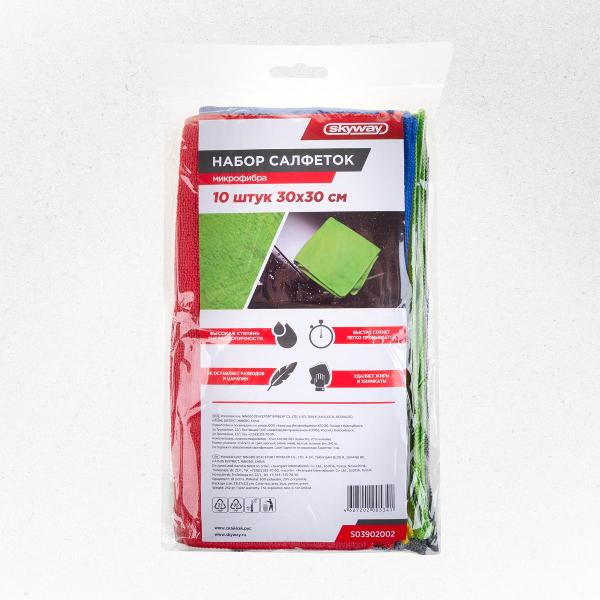 Салфетка микрофибра 30*30см (набор 10 шт), к-т SKYWAY S03902002