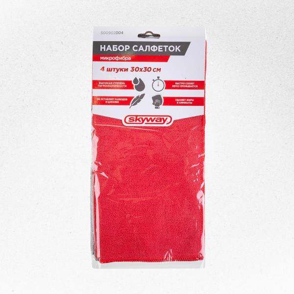 Салфетка микрофибра 30*30см (набор 4 шт), к-т SKYWAY S00902004