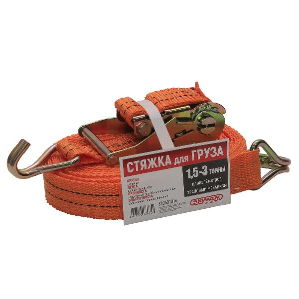 Стяжка груза с храповым механизмом 38мм, 12м, 1.5т SKYWAY S03601016 вывод